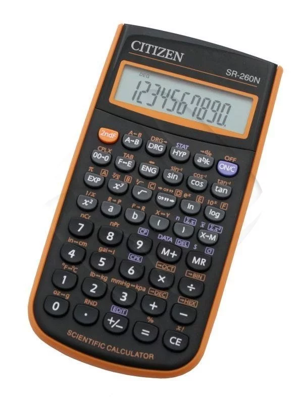 - klawisze gumowe - waga: 92g - wymiary (WxSxG): 154 x 80 x 14 mm - wyświetlacz: 1 linia, 10+2 cyfr, płaski - obudowa w kolorze czarnym z pomarańczowymi wstawkami - twarde etui ochronne Funkcje: - 165 funkcji naukowych - arytmetyczne, trygonometryczne, statystyczne, konwersje m.in: %, 1/x, x^(2), pierwiastek, pi, konwersja kątów i czasu, sin, cos, tan, inwersja, kombinacje, permutacje, średnia, odchylenia standardowe, konwersja jednostek, logarytm, zmienne - funkcja CE (Clear Enter) - klawisz korekty ostatniej cyfry - automatyczne wyłączanie - klawisze pamięci - klawisz +/-