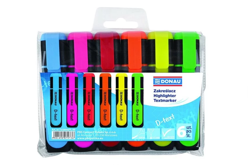 Zakreślacze Donau D-Text 6kol. Etui