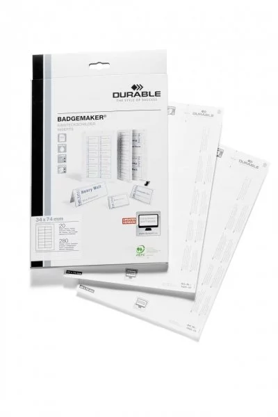 Wkłady Do Identyfikatorów Badgemaker 34x74mm 280szt. Białe /Durable 142502