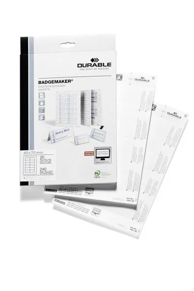 Wkłady Do Identyfikatorów Badgemaker 40x75mm 240szt. Białe /Durable 145302