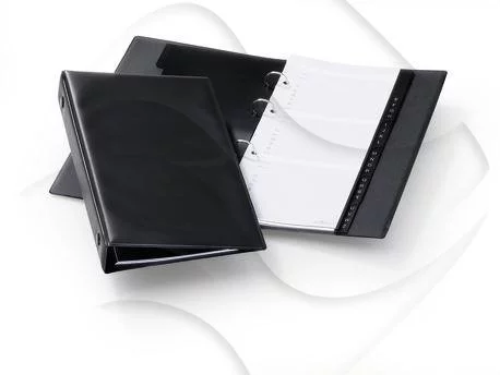 Prezentowany przez nas album na karty teleadresowe marki DURABLE to niezastąpiony pomocnik w każdym biurze, który w kilka chwil pozwoli Ci odnaleźć dane ważnego klienta czy dostawcy. Album wykonany jest z matowej foli polipropylenowej i posiada mechanizm ringowy. Wewnątrz znajdziesz 18 kart kart teleadresowych na 108 wpisów a na nich rubryki do nazwisk, adresów, numerów telefonów, faksów i telefonów komórkowych, adresów e-mailowych i internetowych. Album posiada sześcio częściowe przekładki z PP z nadrukiem A-Z ułatwiające znalezienie odpowiedniego nazwiska czy firmy. Możesz w każdej chwili dokupić dodatkowe karty teleadresowe i rozszerzyć w ten sposób zawartość albumu.