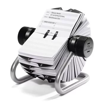 • Kartoteka obrotowa na a wpisy numerów telefonów i adresów. 500 kart do obustronnego opisania o formacie 72 x 104 mm