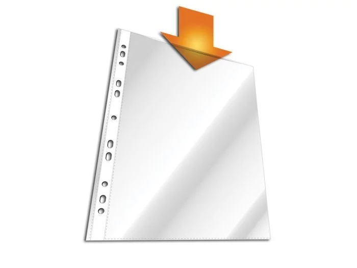Do przechowywania niedziurkowanych dokumentów w segregatorach również z mechanizmem ringowym. Ze wzmocnioną listwą dziurkowaną. Z polipropylenu. Format A3 zagięty do A4. Wykonanie: otwarta górna strona. Grubość materiału 0,06 mm. Uniwersalny rozstaw dziurek. Koszulki groszkowe. Opakowanie 50szt.