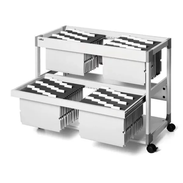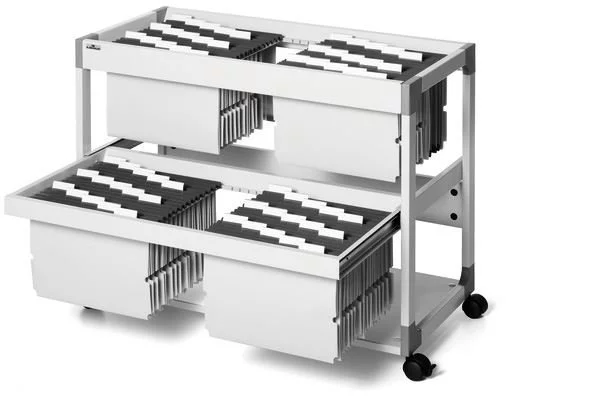 Wózek został wyposażony w dwa niezależne ramiona, umożliwiające przechowywanie aż do 200 teczek zawieszkowych lub kilkudziesięciu segregatorów z uchwytami. Obsługuje dokumenty w formatach A4, Folio i Foolscap, oferując maksymalną elastyczność.