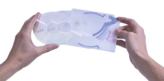 • Ruchem jednego palca wypychasz płytę z pudełka