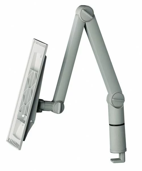 Dwa aluminiowe ramiona i trzy przeguby umożliwiają pełny obrót o 360°, regulację siły docisku i ustawienie elementu w idealnej pozycji względem użytkownika. Szeroki zakres ruchu (316–714 mm) oraz elegancki, nowoczesny design czynią go doskonałym wyborem do dynamicznego środowiska pracy.