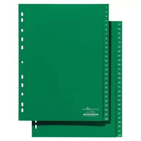 Przekładki do Segregatorów Podwójne 1-26 i 27-52 (52) PP A4 Zielone /Durable 615705