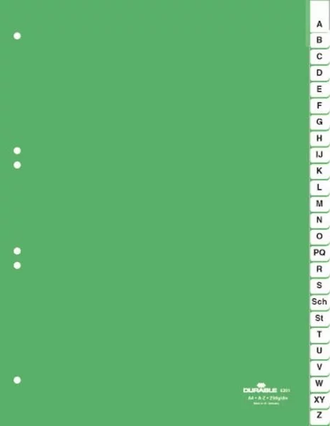 Przekładki do Segregatorów A-Z (25) Strona tytułowa Zgrzane PP A4 Zielone /Durable 620105