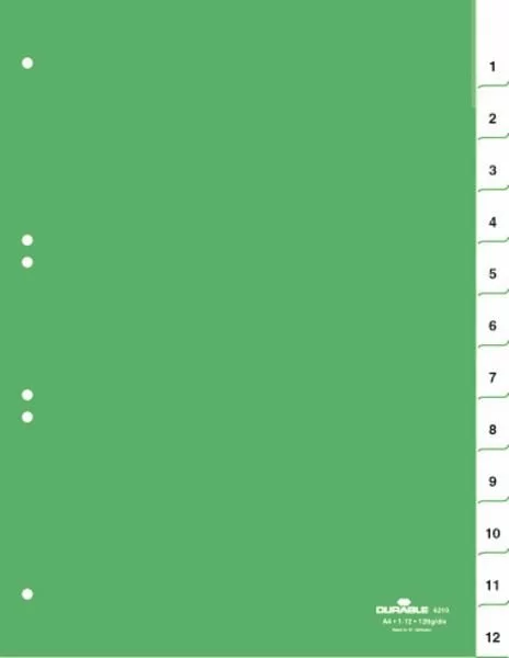 Przekładki A4 PP 1-12  Zielone /Durable 621005