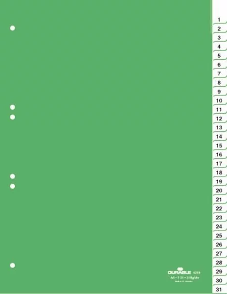 Przekładki do Segregatorów 1-31 Strona Tytułowa Zgrzewane PP A4 Zielone /Durable 621905