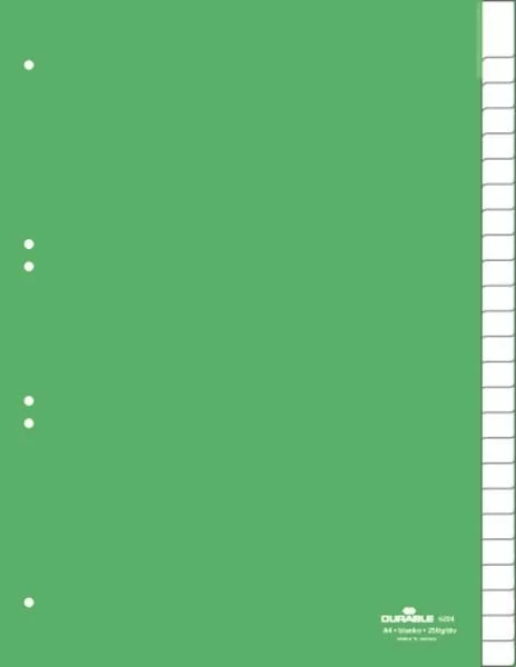 Przekładki do Segregatorów 1-25, A-Z (25) Indeksy Strona Tytułowa Zgrzane PP A4 Zielone /Durable 622405