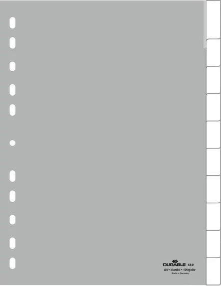 Przekładki A4 PP 1-10 Zgrzane Indeksy Szare /Durable 644110