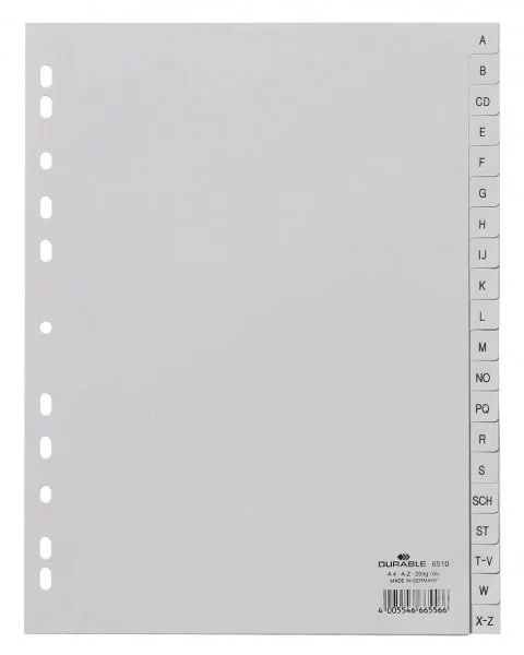 Przekładki do Segregatorów A-Z (20) PP A4 Szare /Durable 651010