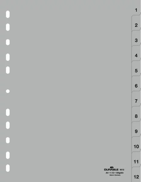 Przekładki A4 PP 1-12 Szare /Durable 651210