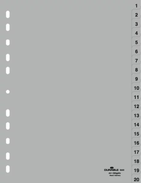 Przekładki do Segregatorów 1-20 PP A4 Szare /Durable 652210