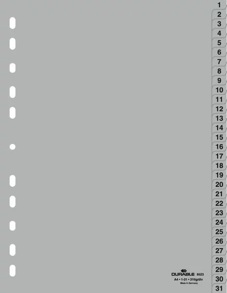 Przekładki do Segregatorów 1-31 PP A4 Szare /Durable 652310