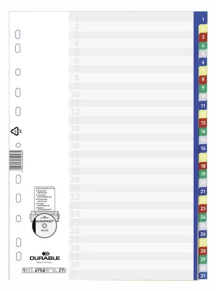 Przekładki do Segregatorów 1-31 PP A4 Mix Kolorów /Durable 675627