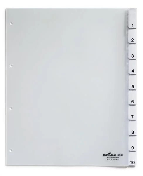 Przekładki A4 PP 1-10 Zgrzane Wymienne Indeksy Przezroczyste /Durable 683119