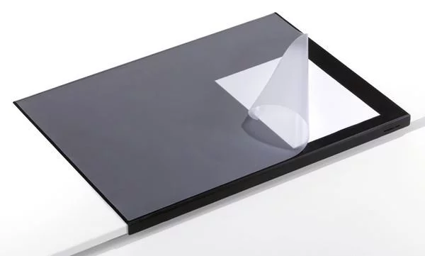 • Podkład na biurko z zabezpieczeniem krawędzi i transparentną nakładką, idealną do włożenia pod nią notatek i spisów (np. nr telefonów)