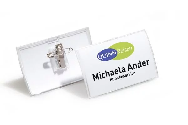• Elastyczny zawias łączy przednią i tylną część identyfikatora - umożliwia prostą i szybką wymianę etykiety