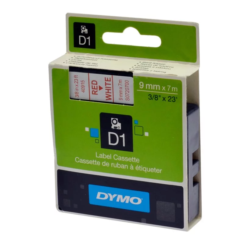 Taśma Dymo D1 9mm x 7m (40915) Biała/Czerwony Nadruk