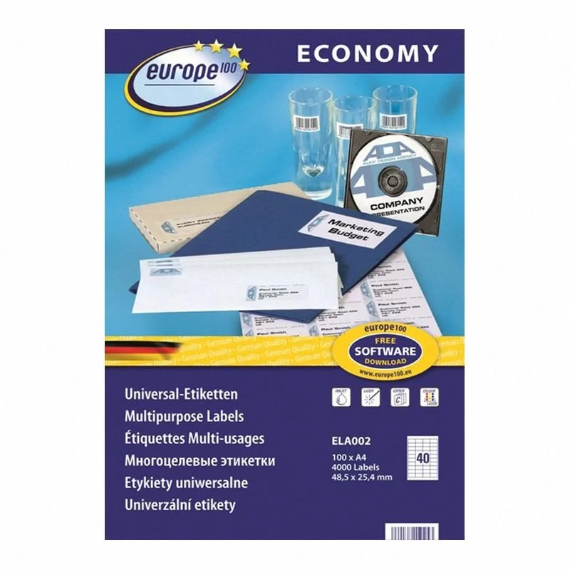 Etykiety Samoprzylepne Economy Europe100 by Avery 48,5x25,4 40/A4 A'100 No.ELA002