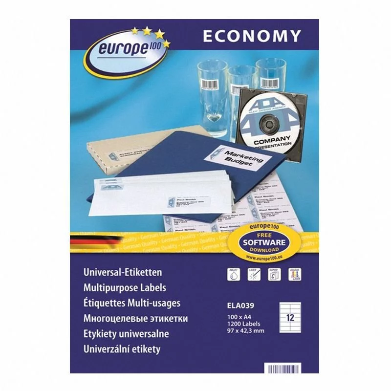 Etykiety, samoprzylepne Europe100 by Avery Zweckform ELA039 z linii Economy, kolor biały