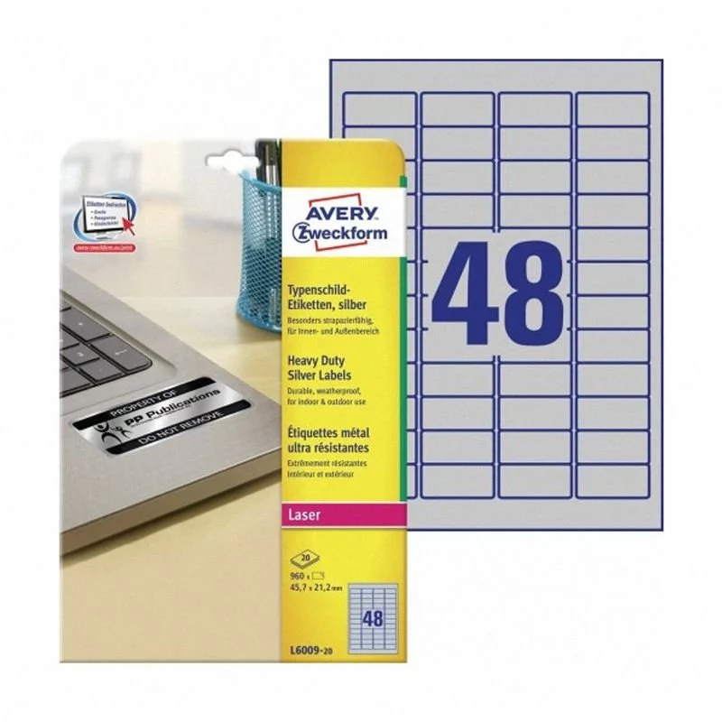 Etykiety Samop. Avery HD Foliowe 45,7x21,2 48/A4 A'20 Srebrne No.L6009-20