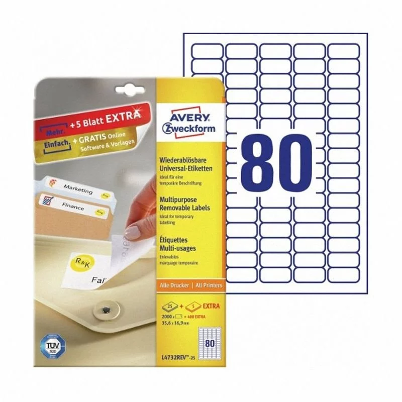 Etykiety Samop. Avery 35,6x16,9 80/A4 A'25 Usuwalne Białe No.L4732REV-25