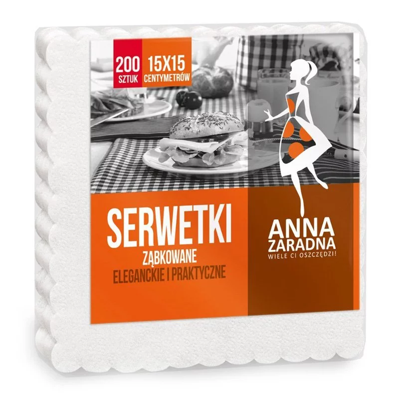 Serwetki ząbkowane 15x15 200szt. białe marki Anna Zaradna