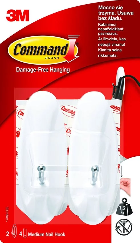 Hak z Metalowym Uchwytem Samoprzylepny 2szt. Biały (17068) /Command