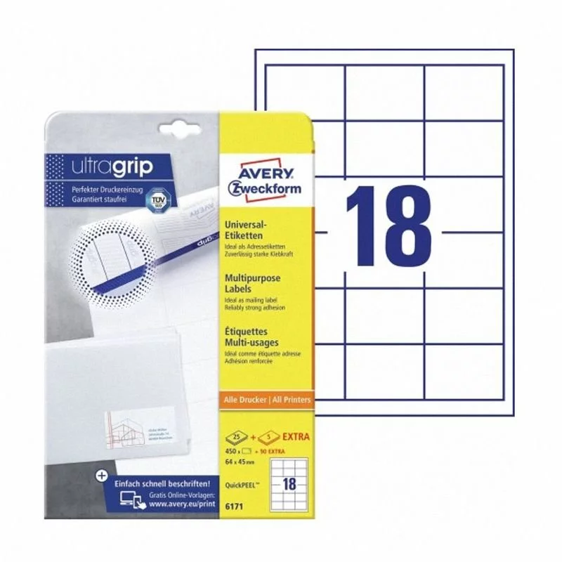 Etykiety Samoprzylepne Avery 64x45 18/A4 A'25 Białe No.6171
