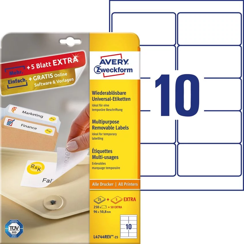 • Etykiety, samoprzylepne, usuwalne Avery Zweckform L4744REV-25. Do drukarek laserowych i kopiarek. Bardzo wytrzymałe i odporne na podarcie. Nie pozostawiają śladów kleju.