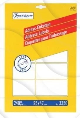 • Etykiety adresowe do maszyn do pisania oraz drukarek igłowych Avery Zweckform 3350. Idealne w sytuacji, gdy szybko potrzebujesz zaadresować korespondencję.
