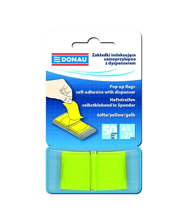 Zakładki Indeks. PP z Dyspenserem 45x25 A'50 Żółte /Donau