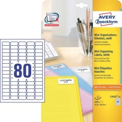 Minietykiety samoprzylepne Avery 35.6x16.9 80/A4 A'25 Białe No.L7632-25