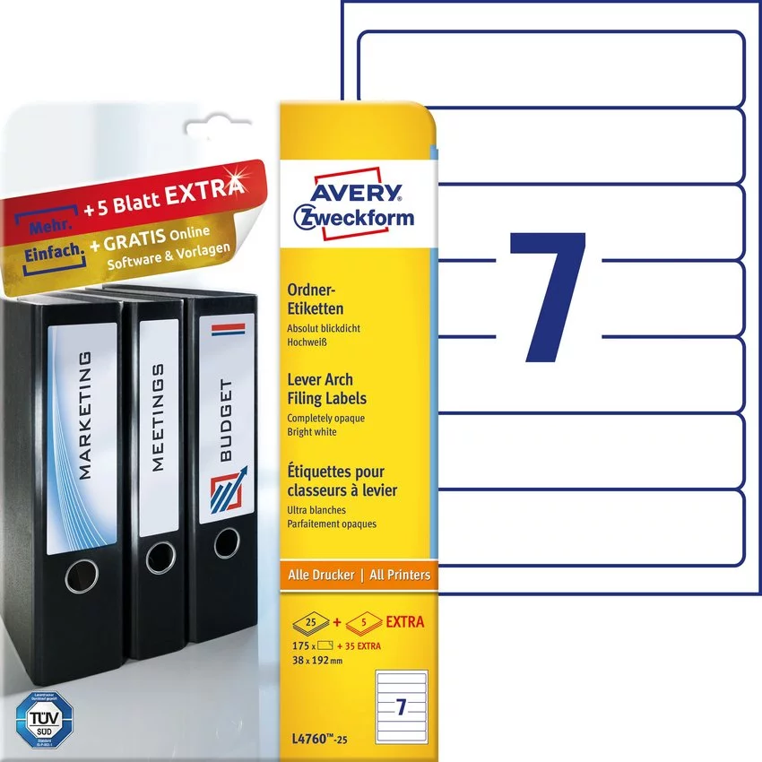 Etykiety do segregatora Avery 192x38 7/A4 A'25 Białe No.L4760-25