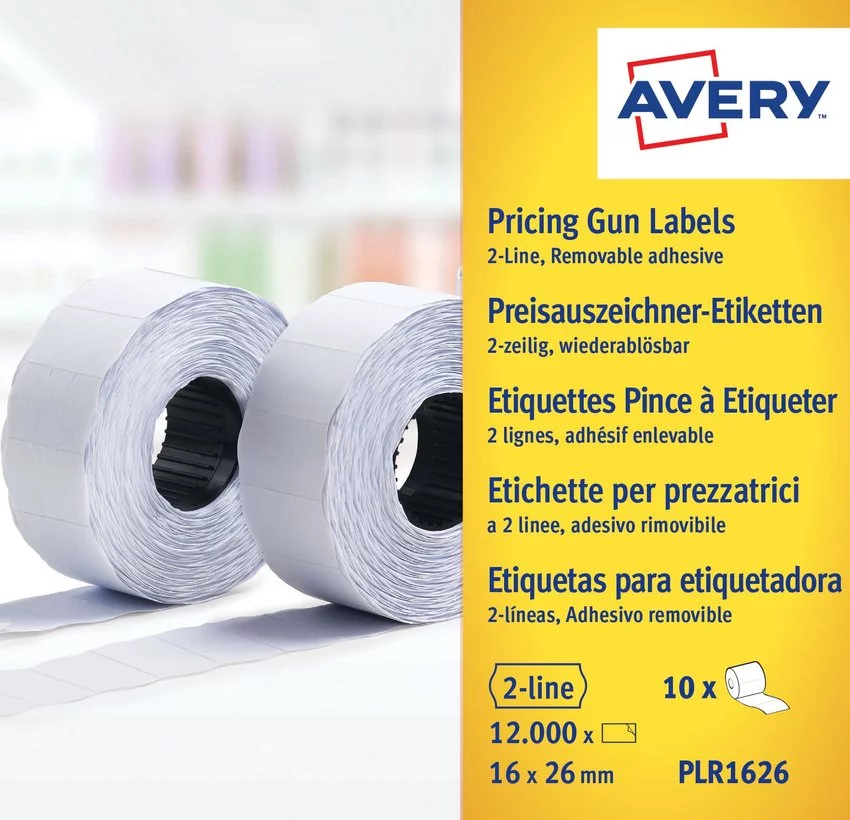 • Etykiety cenowe do metkownicy jednorzędowej Avery Zweckform PLR1626, kolor biały. Papierowe, Usuwalne dzięki czemu łatwo odkleisz je z produktu. 10 rolek w opakowaniu.