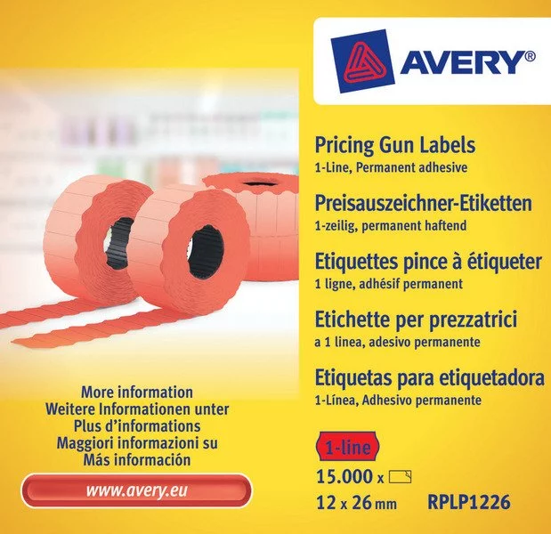 Etykiety Cenowe w Rolce do Metkownicy Jednorzędowej Avery 26x12 10/Rol. A'1500 Czerwone No.RPLP1226