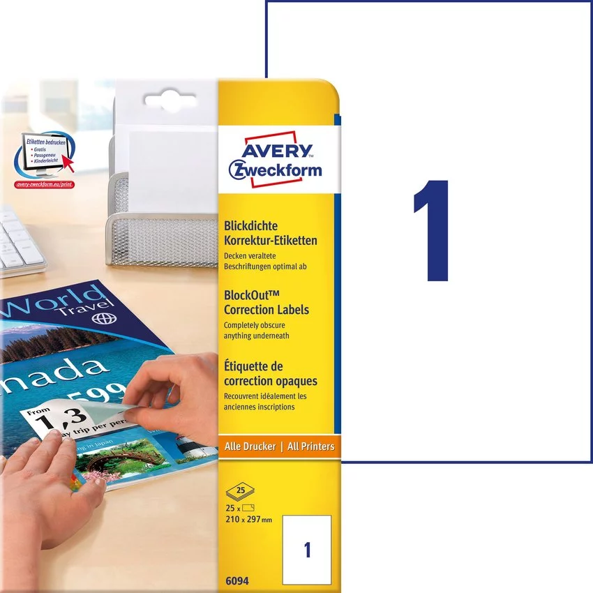 Etykiety Korekcyjne BlackOut Avery 210x297 1/A4 A'25 Białe No.6094