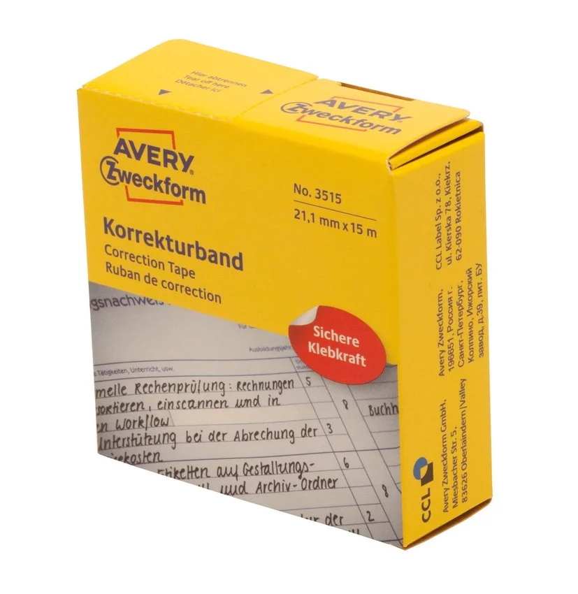 • Taśma trójwierszowa korygująca Avery Zweckform 3515 w kolorze białym.