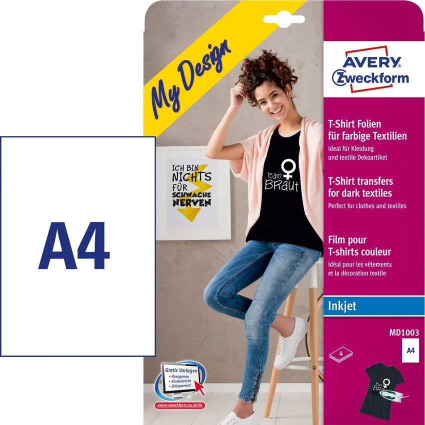 Folie Transferowe do Kolorowych Tkanin A4 4szt. Avery 210x297 No.MD1003