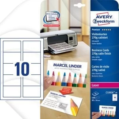Wizytówki Obustronne Quick&Clean 270g 100szt. Laser Avery 85x54 Śnieznobiałe Satynowe No.C32026-10