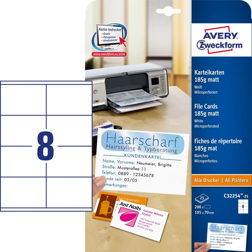 Karty Katalogowe z Mikroperforacją 185g 200szt. Avery 105x70 Białe Matowe No.C32254-25