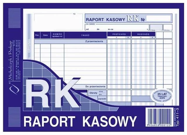 Raport Kasowy RK A5 Oryg.+1k Poziom 411-3 /MiP