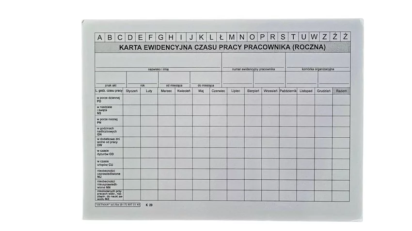 Karta Ewidencji Czasu Pracy A5 /Hetman