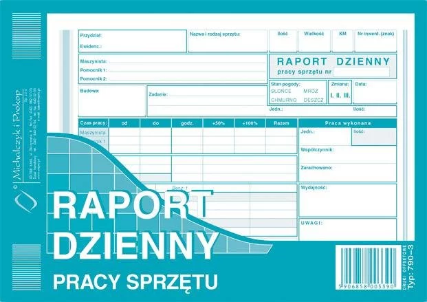 Raport Dzienny Pracy Sprzętu A5 Offset 790-3 /MiP