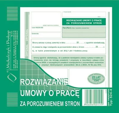 Rozwiązanie Umowy Za Porozumieniem Stron 2/3 A5 Oryg.+1k 524-4 /MiP
