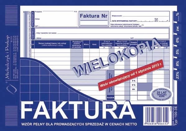 Faktura wzór pełny dla prowadzących sprzedaż w cenach netto marki MiP