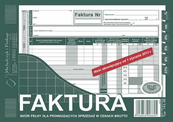 Faktura Brutto A5 Oryg.+1k Poziom 143-3E /MiP